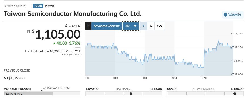 $TSM 2330$TSM TSMC米国市場BHの取引開始前の台湾市場取引時間中の決算発表に3.76%で反応 EPS〇売上○ Taiwan Semiconductor Manufacturing Company GAAP EPS of $2.24 beats by $0.01, revenue of $26.88B beats by $890M seekingalpha.com/news/4395495… Taiwan Semiconductor… pic.x.com/RtWdYmGfbL