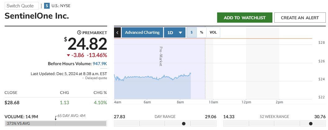 $S SentinelOne の株価急落第3四半期の混合結果を受けて、FY2025のガイダンスを引き上げたにもかかわらず、株価は13%急落しました 参考 EPS×売上○ガイダンス〇 SentinelOne GAAP EPS of$0.25 misses by $0.05, revenue of $210.6M beats by $0.88M seekingalpha.com/news/4363624… SentinelOne… pic.x.com/MTkasQ2Rv9