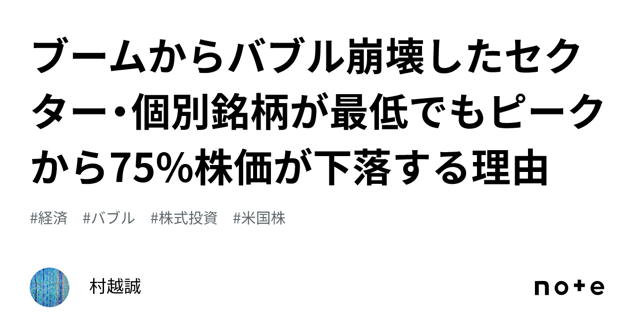 ブームからバブル崩壊したセクター・個別銘柄が最低でもピークから75%株価が下落する理由|村越誠