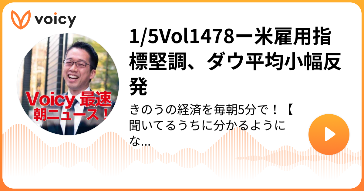 1/5Vol1478ー米雇用指標堅調、ダウ平均小幅反発 | DJ Nobby「きのうの経済を毎朝5分で!」/ Voicy - 音声プラットフォーム