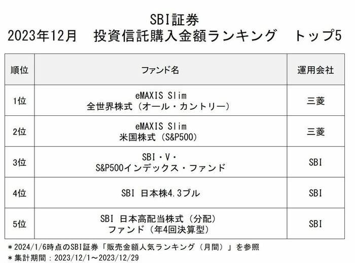 ■ネット証券で1位の「eMAXIS Slim 米国株式」が13年ぶりの“3兆円ファンド”へ #SP500 2024/01/15 SBI証券のランキング5位に「SBI日本高配当株式ファンド」がランクイン gunosy.com/articles/eqoHO