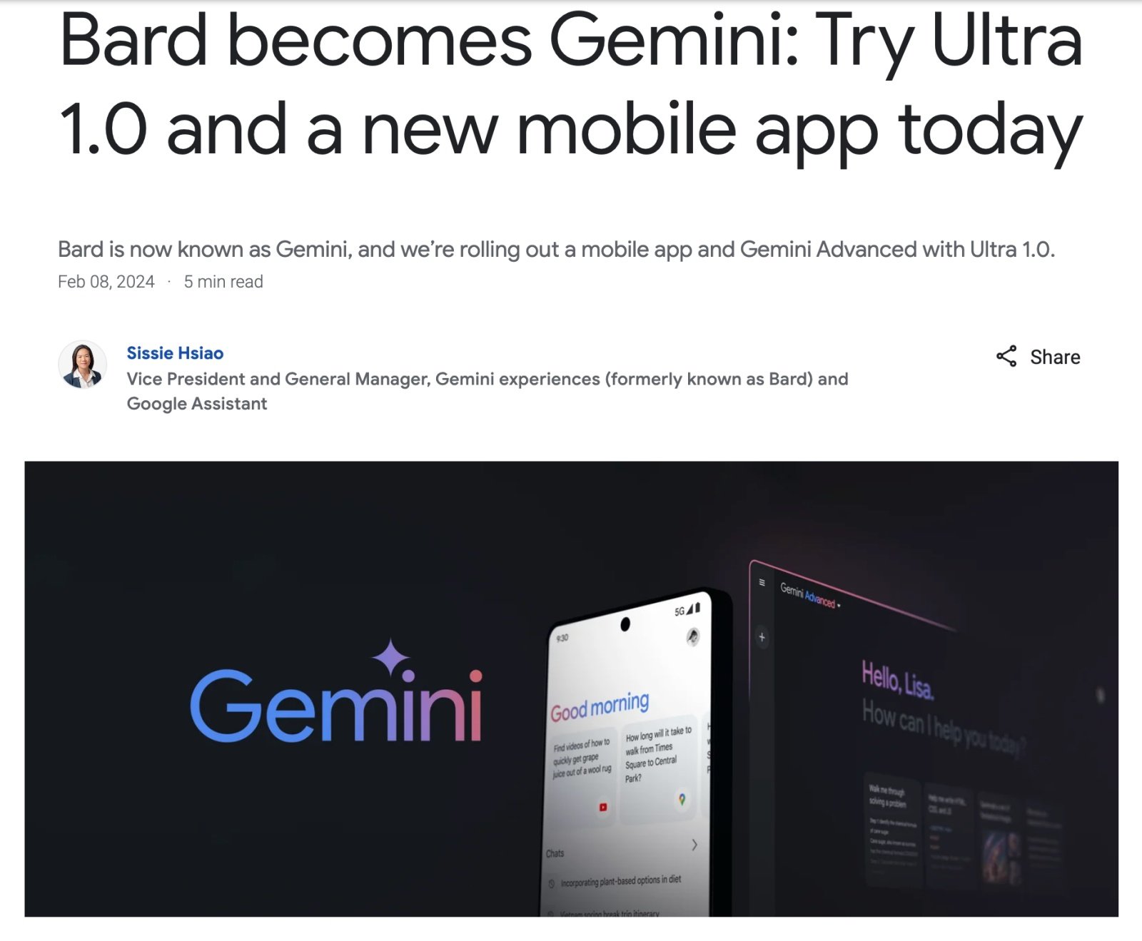 Google、マルチモーダル生成AIモデル「Gemini」のアプリ発表 「Bard」の名称変更も