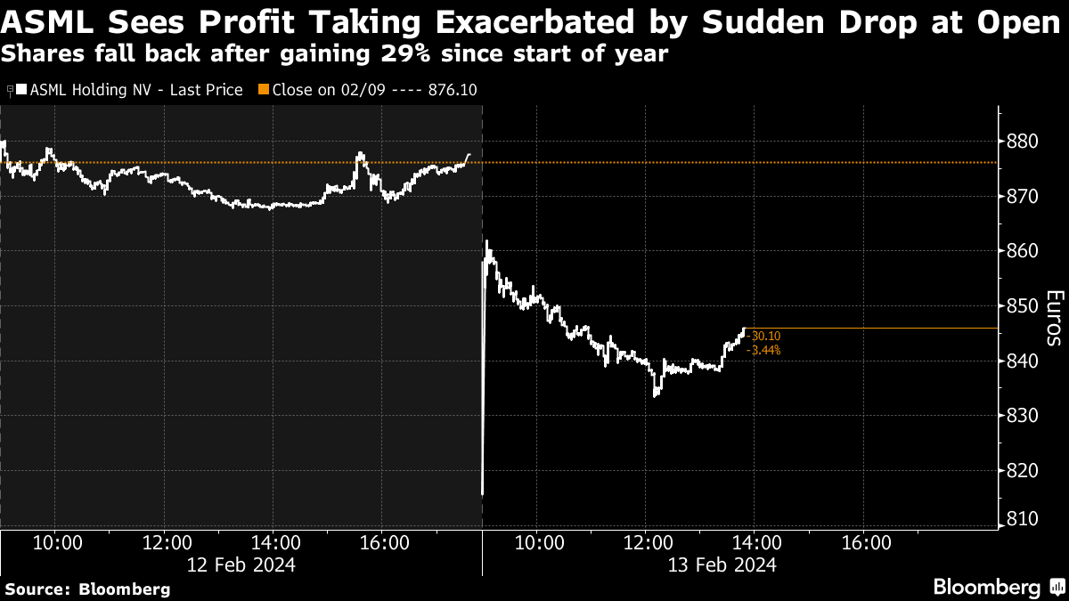 ASML株が一時7.1%急落、「ファットフィンガー」か-取引所は否定