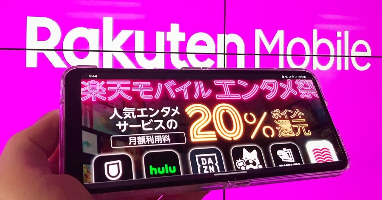楽天モバイルとエンタメサービスの利用で20%還元 U-NEXT/Hulu/DAZN/ABEMA プレミアムなどが対象