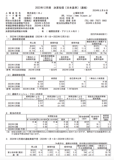 IBJ 2023年12月期通期決算 : 官報ブログ