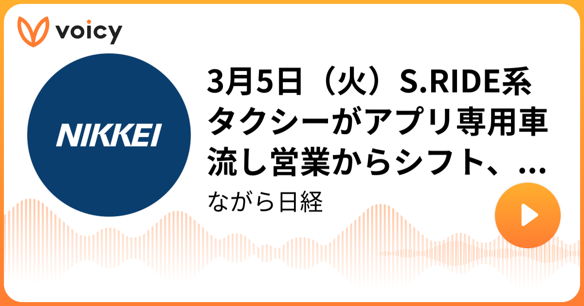 3月5日(火)S.RIDE系タクシーがアプリ専用車 流し営業からシフト、日経平均株価 終値も4万円台 | 日本経済新聞社「ながら日経」/ Voicy - 音声プラットフォーム