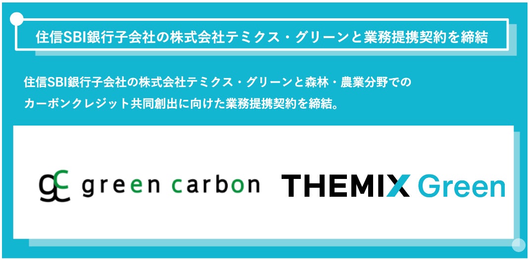 Green Carbon株式会社は、住信SBI銀行子会社の株式会社テミクス・グリーンと 森林・農業分野でのカーボンクレジット共同創出に向けた業務提携契約を締結