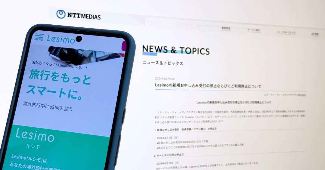 海外向けeSIM「Lesimo」、開始からわずか1年で終了 提供元のNTTメディアサプライが案内