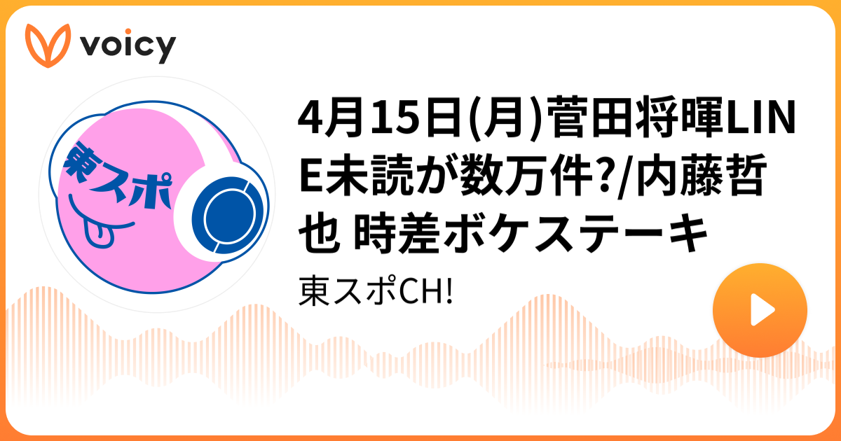 4月15日(月)菅田将暉LINE未読が数万件?/内藤哲也 時差ボケステーキ | 東京スポーツ新聞社「東スポCH!」/ Voicy - 音声プラットフォーム