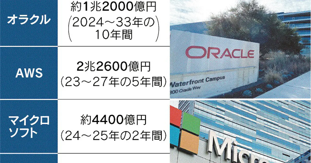 米クラウド、対日投資4兆円 オラクルなど3社合計 生成AI普及に対応 - 日本経済新聞