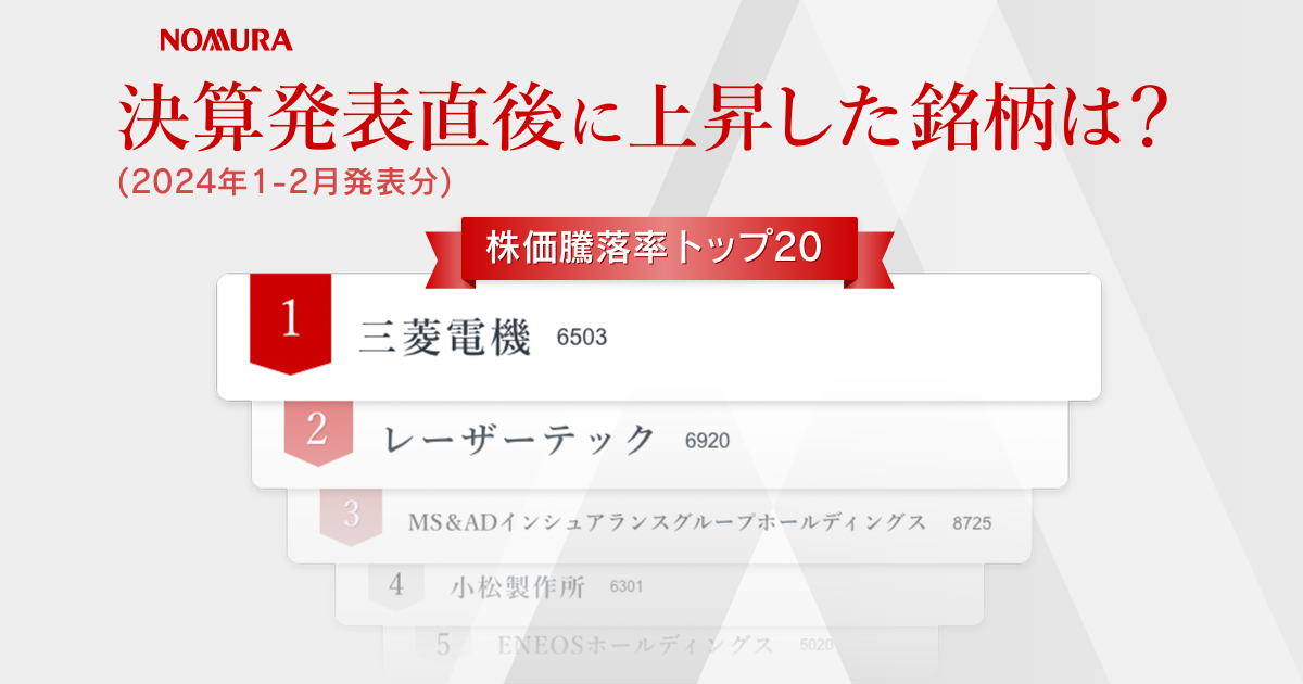 決算発表直後に上昇したTOPIX100構成銘柄は? 株価騰落率TOP20(2024年4-5月発表分) | EL BORDE(エル・ボルデ) by Nomura - ビジネスもプライベートも妥協しないミライを築くためのWEBマガジン