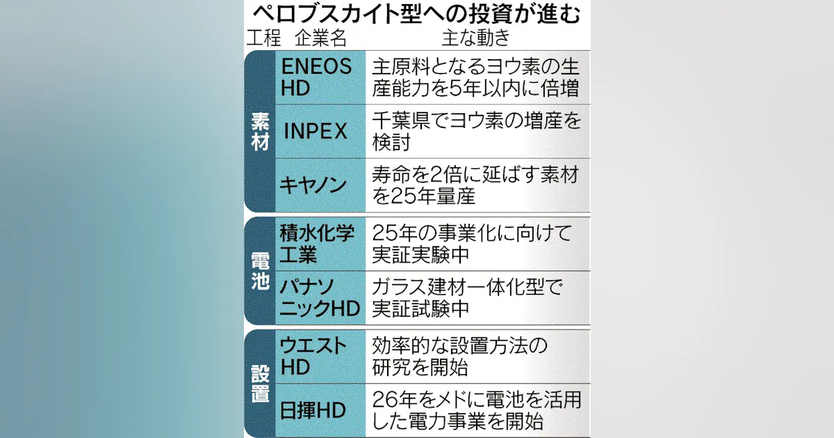 「ENEOSHDはペロブスカイト型の主原料となるヨウ素を増産する。グループのJX石油開発が中条油業所に100億円以上を追加投資する」 新潟でヨウ素を生産。 曲がる太陽電池に積極投資 供給網構築、中国に対抗日本経済新聞 nikkei.com/article/DGKKZO…