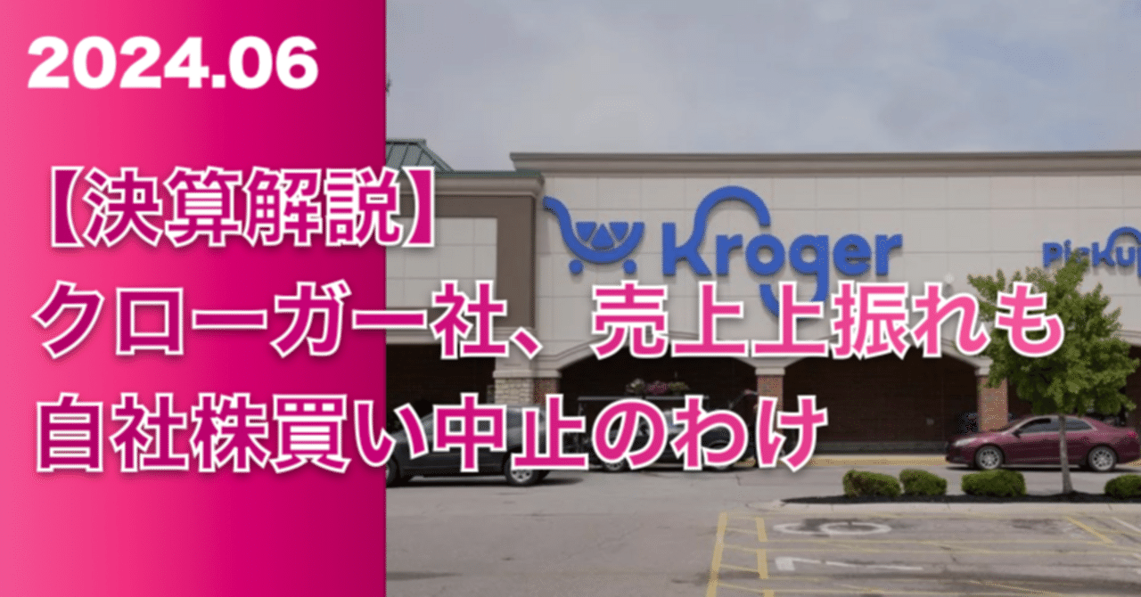 【決算解説】クローガー社、売上上振れも、自社株買い中止のわけ|米国株サムライ