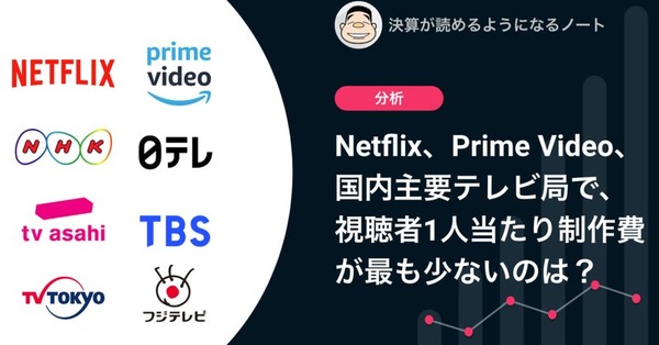 Netflix、Prime Video、国内主要テレビ局で、視聴者1人当たりの制作費が最も少ないのは? | 決算が読めるようになるノート
