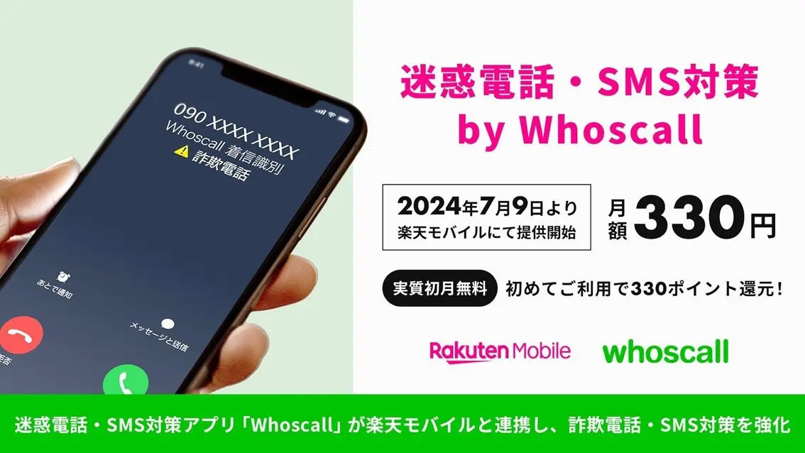 楽天モバイルが「迷惑電話・SMS対策 by Whoscall」提供 月額330円