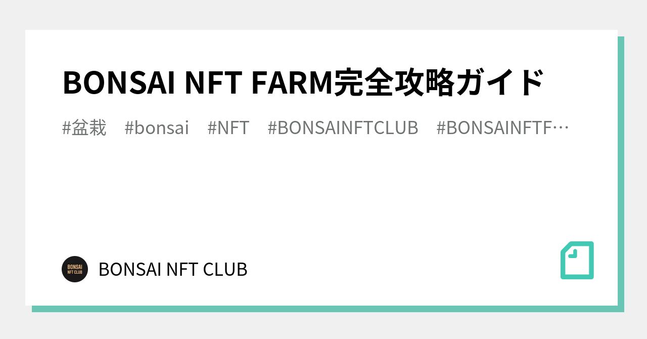 BONSAI NFT FARM完全攻略ガイド|BONSAI NFT CLUB