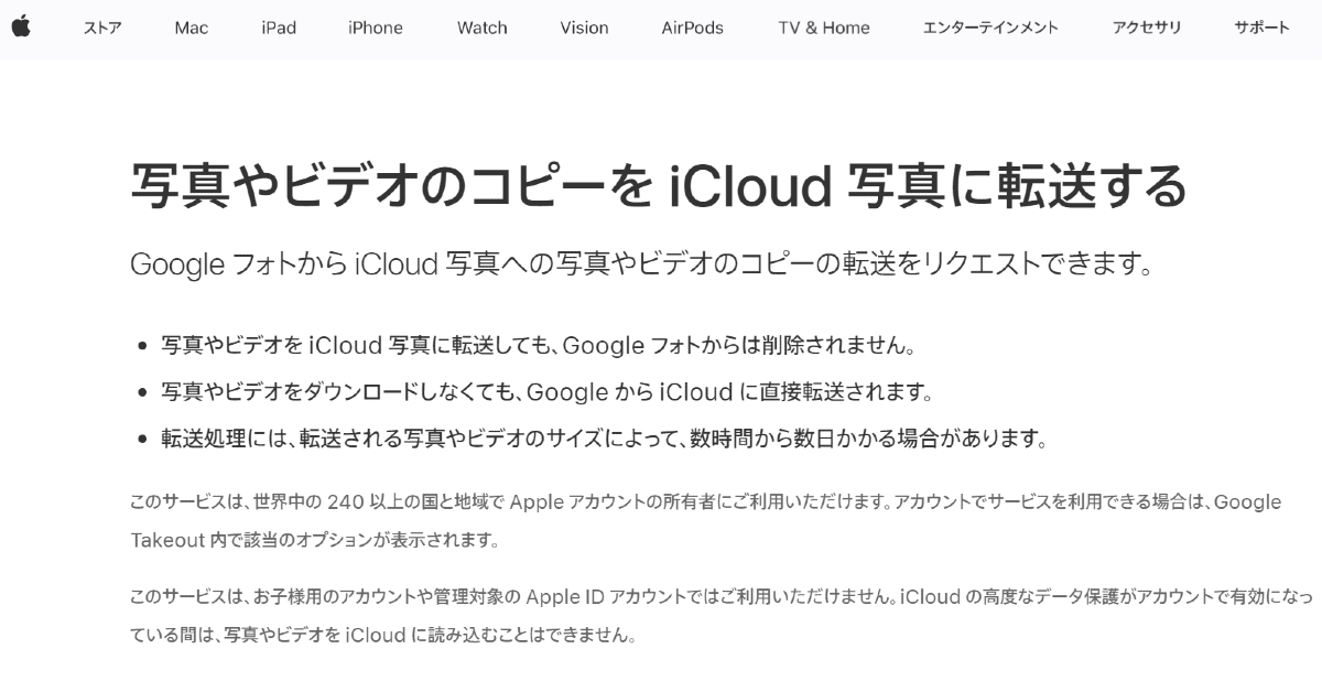 Googleフォトのデータ、AppleのiCloudに直接エクスポート可能に