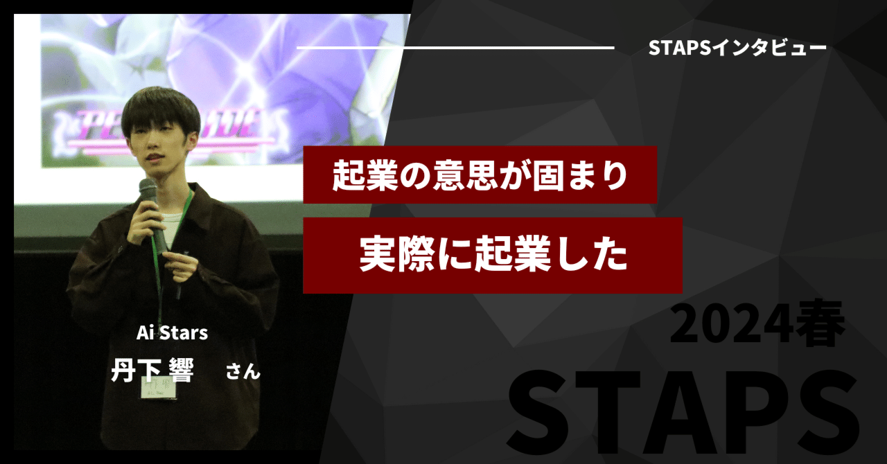 【✨Ai_stars丹下さんインタビュー解禁✨】 今回はインタビューしたのは、STAPS最終ピッチ大会にて優秀賞を獲得され、現在は資金調達をしながら活躍されている学生起業家のAi_stars丹下さんです🎉 ぜひご覧ください! #STAPS_ch 丹下さんのnoteはこちら👇 note.com/stai/n/n4f8b38…