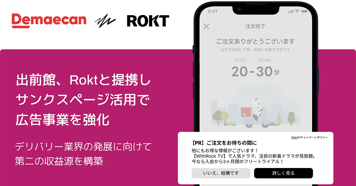 出前館、Roktと提携し広告事業を強化 注文完了後のサンクスページに関連性の高い外部広告を表示