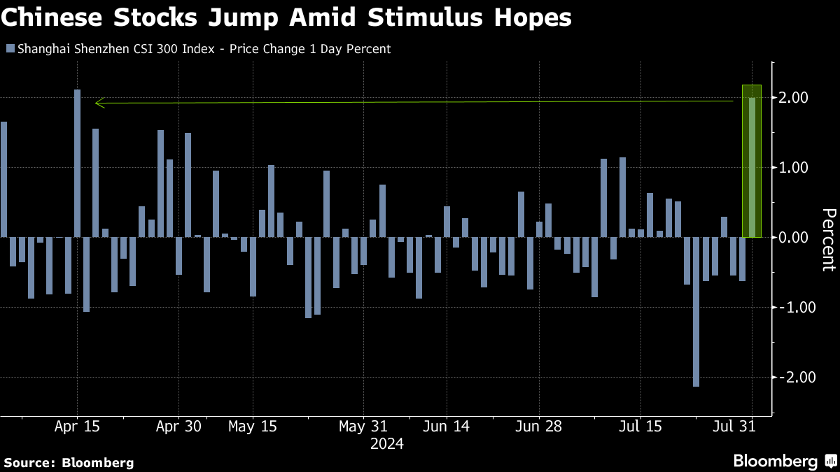 中国株上昇、 CSI300指数が4月以来の大きな上げ -刺激策期待 bloomberg.co.jp/news/articles/… 2024年7月31日 14香港に上場する中国本土株の指標H株指数も高い 個人消費の促進を優先する-共産党中央政治局