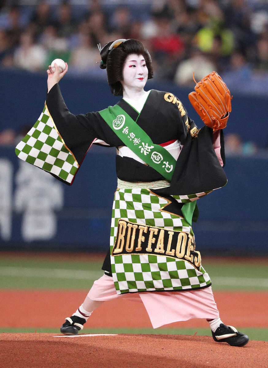 オリックスファンの芸妓(げいこ)の雛佑(ひなゆう)さんが着物姿で始球式に登板 - スポニチ Sponichi Annex 野球