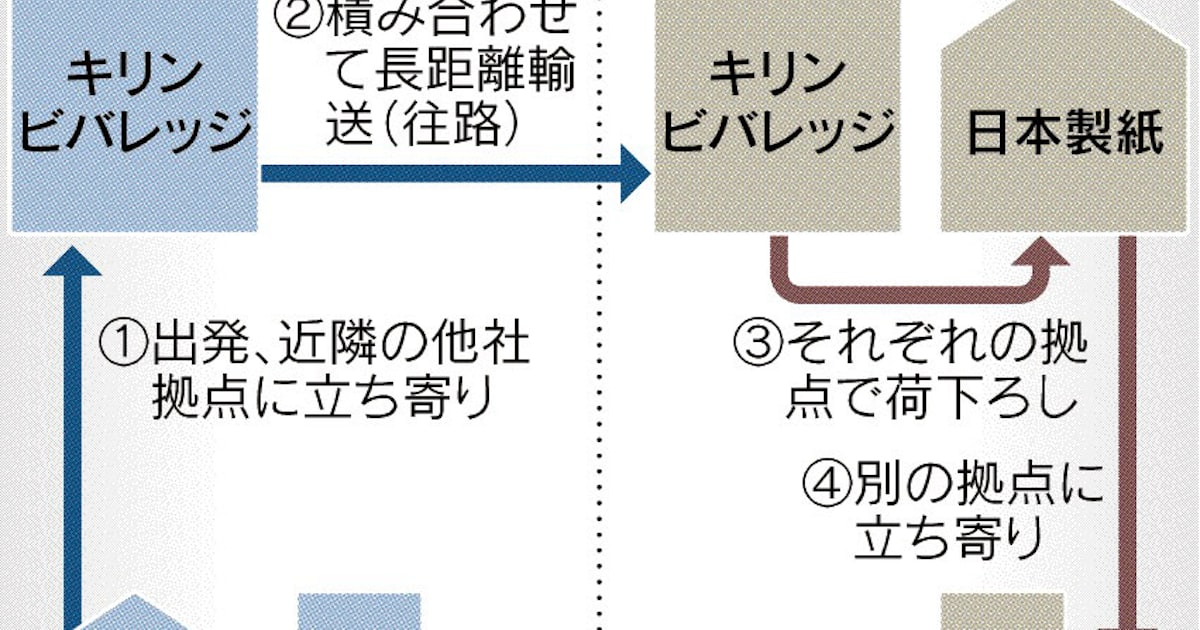 日本製紙やキリンビバ、異業種5社が共同輸送 2024年問題に対応 データ共有、積載率上げ - 日本経済新聞