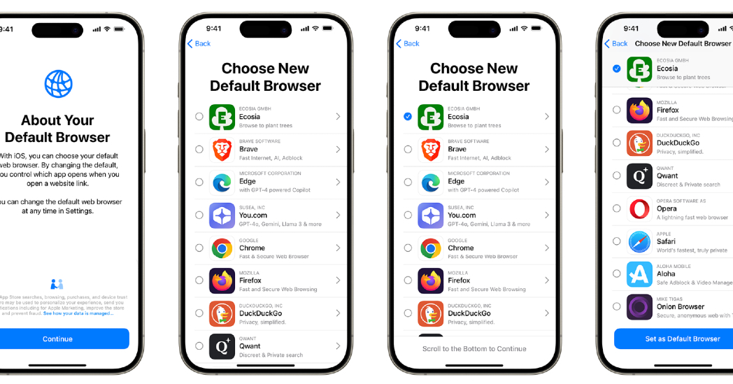 Apple、EUでのiOSのブラウザ選択画面公開 Safariや「メッセージ」は削除可能に