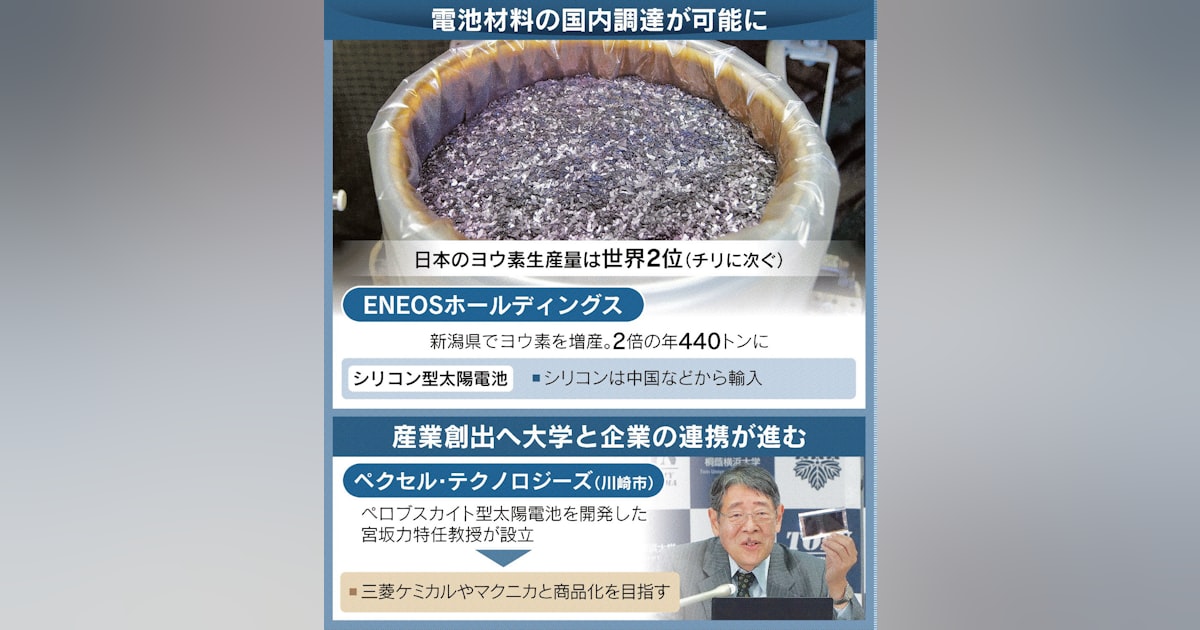「次世代太陽電池の本命とされる「ペロブスカイト型太陽電池」が実用段階に近づいてきた。京都大学発スタートアップがトヨタ自動車や日揮ホールディングスと組み、電気自動車に搭載できる電池などを開発」/曲がる太陽電池、日本の勝ち筋日本経済新聞 nikkei.com/article/DGKKZO…