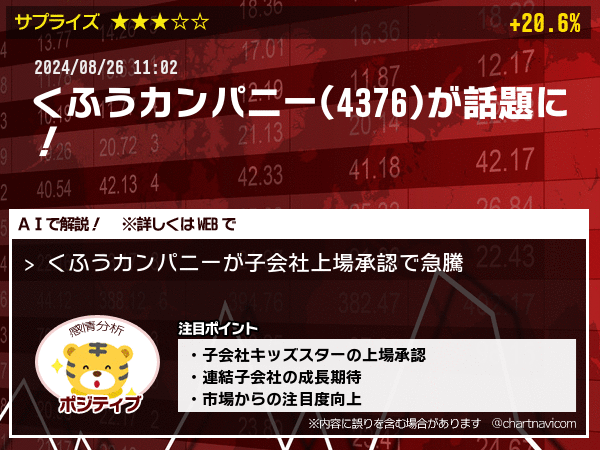 くふうカンパニーが子会社上場承認で急騰|チャートなび