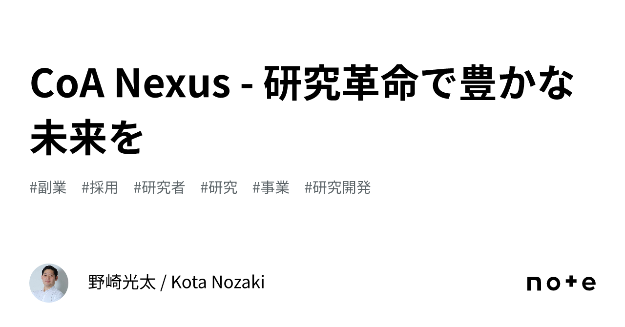 CoA Nexus - 研究革命で豊かな未来を|野崎光太 / Kota Nozaki
