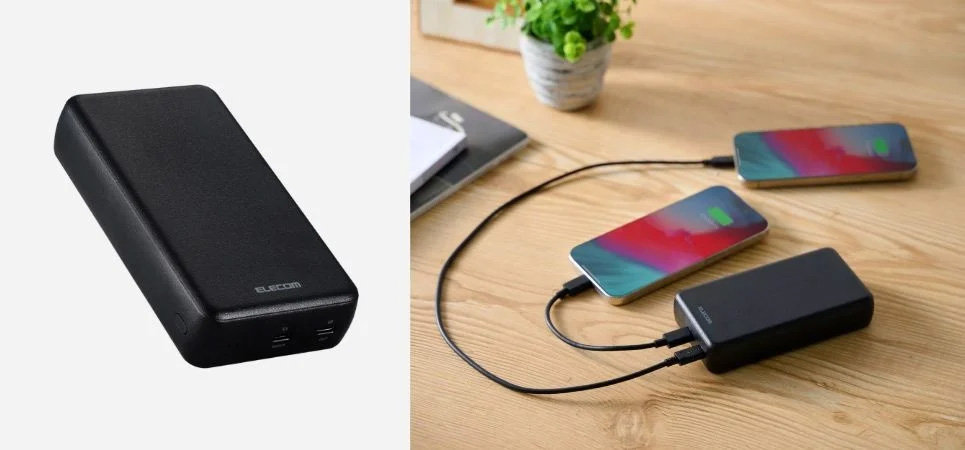 エレコムから2万mAhのモバイルバッテリー USB Type-Cポートで2台同時充電OK