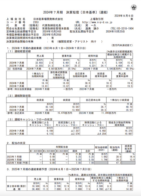 日本駐車場開発 2024年7月期通期決算 : 官報ブログ