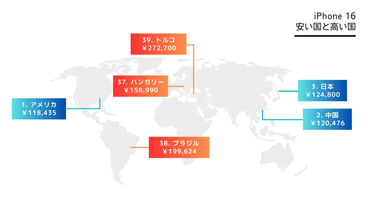 日本の「iPhone 16」は世界で3番目に安い、最高値のトルコは27万円超え NukeniがApple Storeを調査