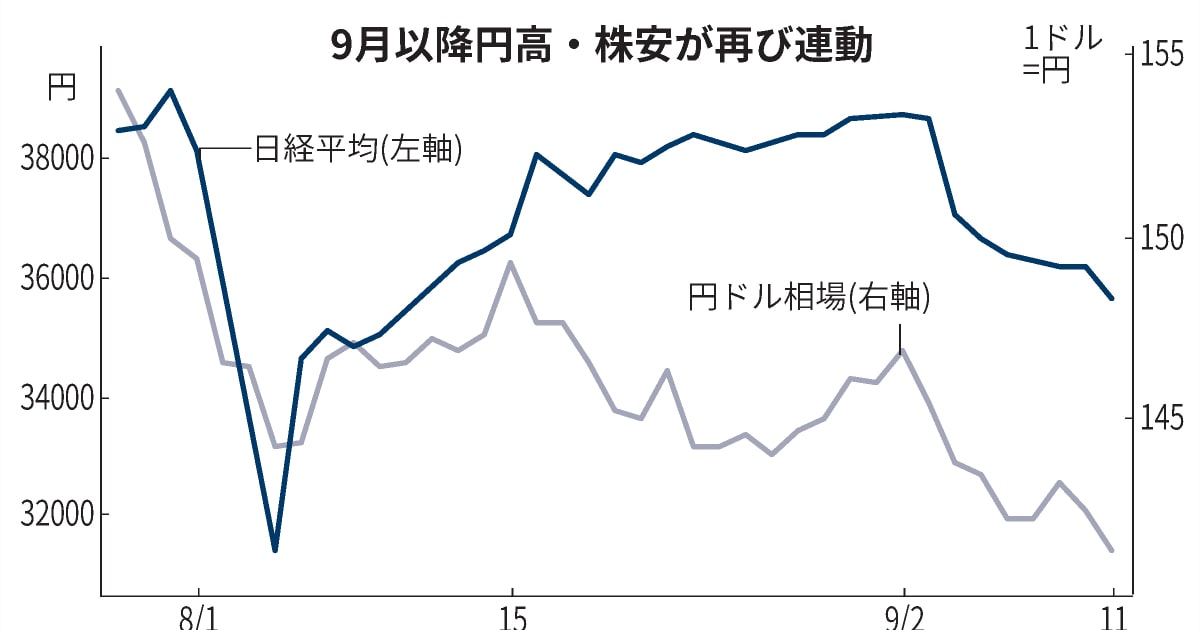 日経平均株価7日で3000円安 円急伸で外需株に売り圧力日本経済新聞〜9月に入ってから、円高・ドル安と日本株安が再び連動するようになっている nikkei.com/article/DGXZQO…