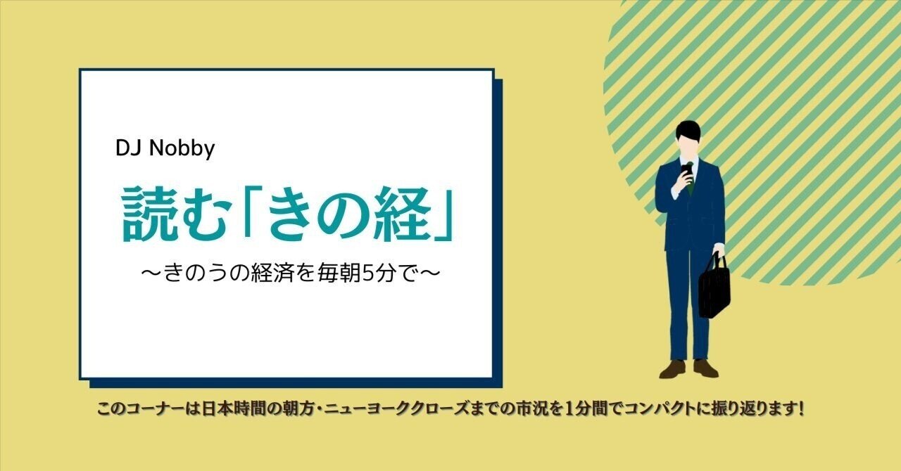 【経済ニュースアップデート更新!】 今朝までの市場の動きをサクッとチェックできる「読むきの経」、今朝もnoteの有料マガジンで更新しています。音声もいいけど、文字でも是非! #note note.com/djnobby/n/n8e3…