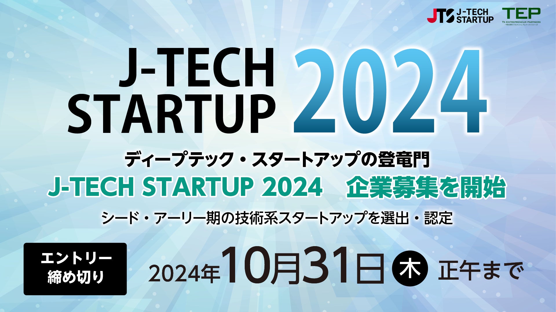 シード・アーリー期ディープテック・スタートアップの登竜門 第9回目となる 「J-TECH STARTUP 2024」 企業募集を開始