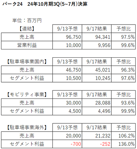 【2024.9.17】前日比-77,930円/パーク24が3Q決算を発表 : おかっちの株式投資奮闘記