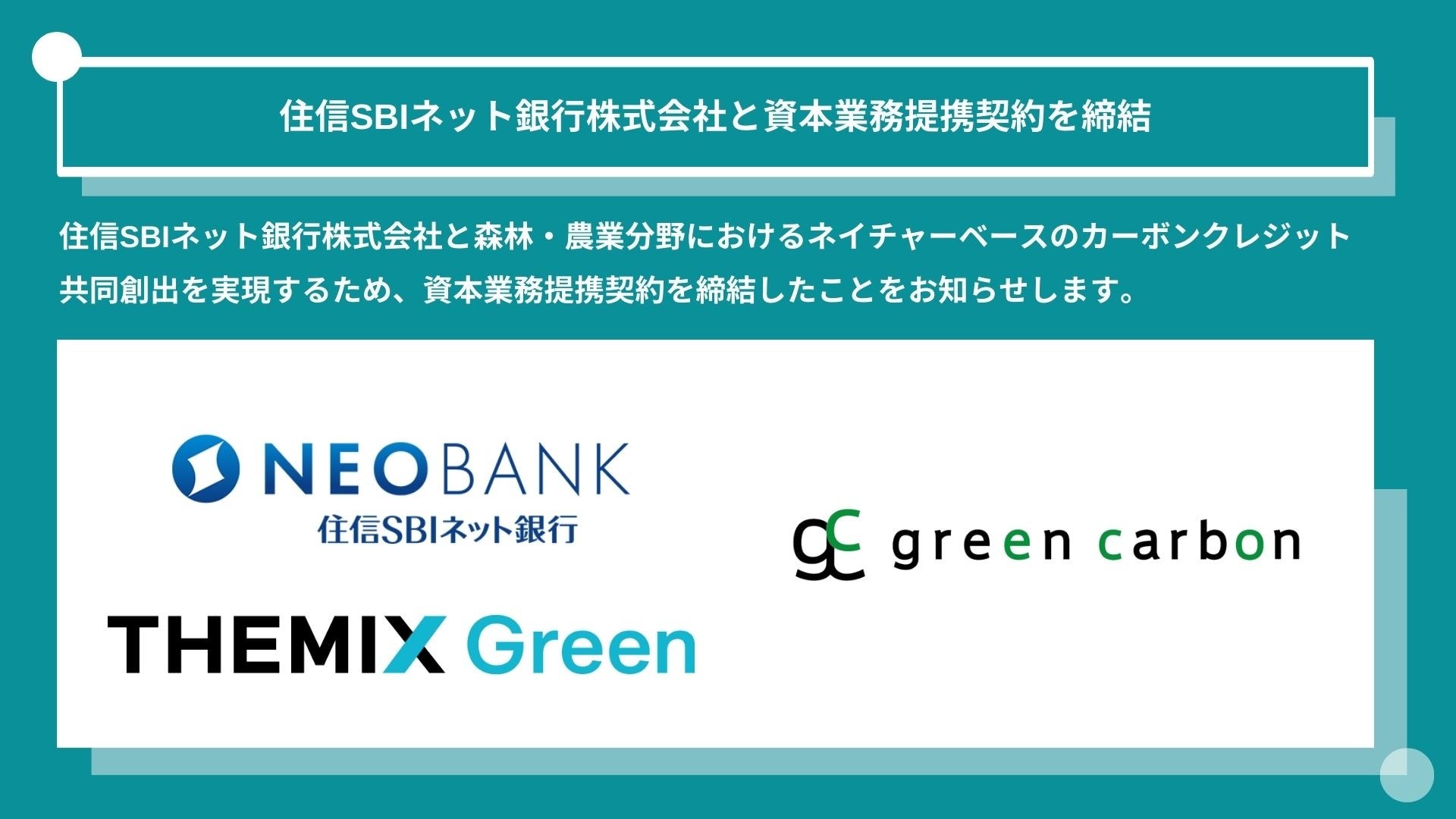 Green Carbon株式会社は、住信SBIネット銀行株式会社と資本業務提携契約を締結