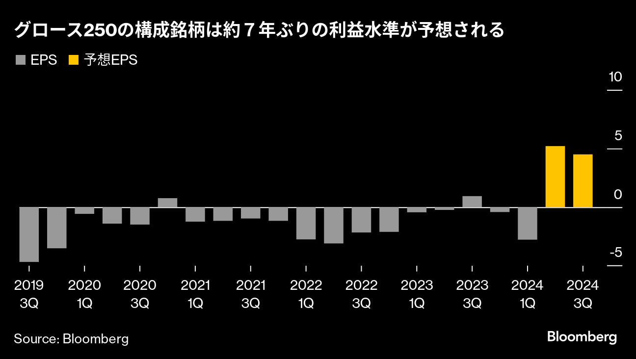 ”アナリスト グロース250銘柄の1株当たり利益予想は5.2円と2017年6月以来、およそ7年ぶりの高水準に達する見通し。” bloomberg.co.jp/news/articles/…