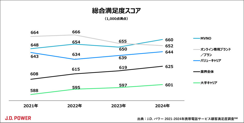 スマホ満足度でMVNOが1位、大手3キャリアではドコモが1位 J.D.パワーが調査