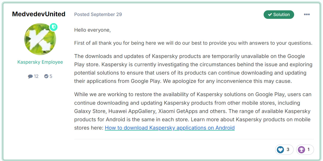 Google PlayからロシアKasperskyのアプリが消える 米政府の方針か