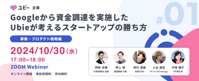 Googleから資金調達を実施したUbieが考えるスタートアップの勝ち方 ~事業・プロダクト戦略編~ (2024/10/30 17:00〜)