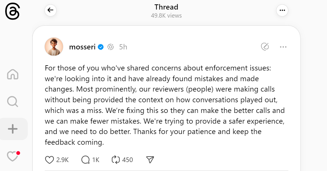 Threadsの“モデレーションの失敗”は人為的なもの──モッセリ氏