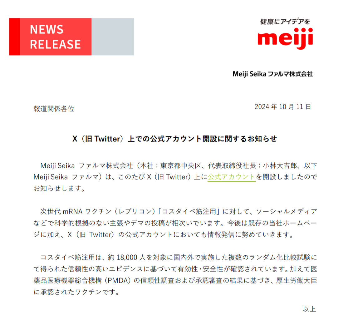 新型コロナ「レプリコンワクチン」めぐりデマ拡散 Meiji Seikaファルマ、Xアカウント開設で情報発信へ