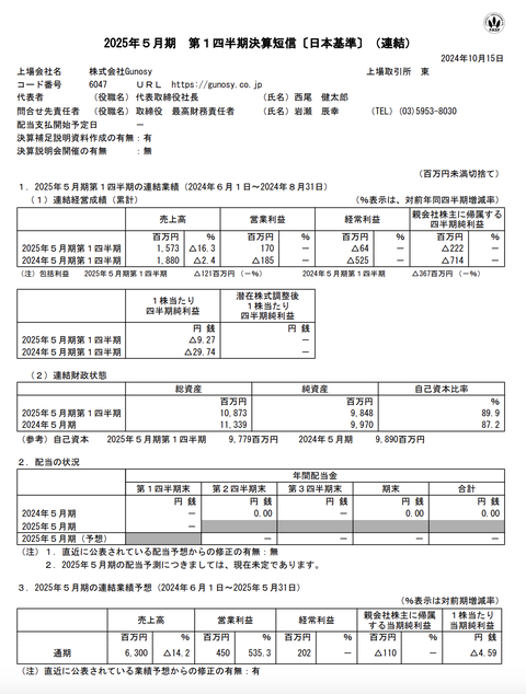 Gunosy 2025年5月期第1四半期決算 : 官報ブログ