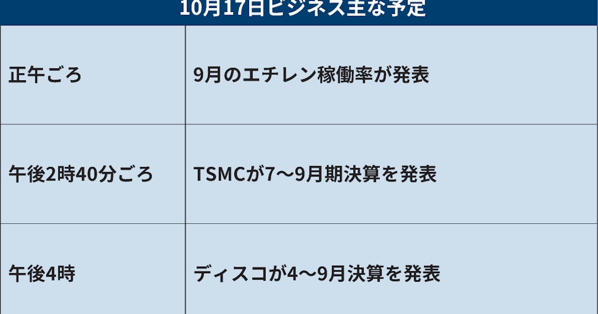 TSMCが決算発表 10月17日ビジネス主な予定 - 日本経済新聞