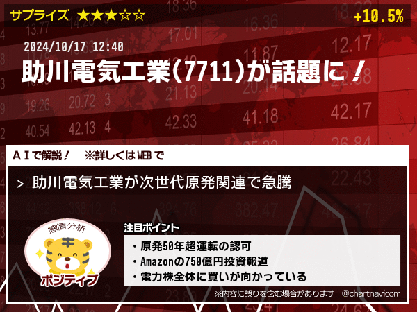 助川電気工業が次世代原発関連で急騰|チャートなび
