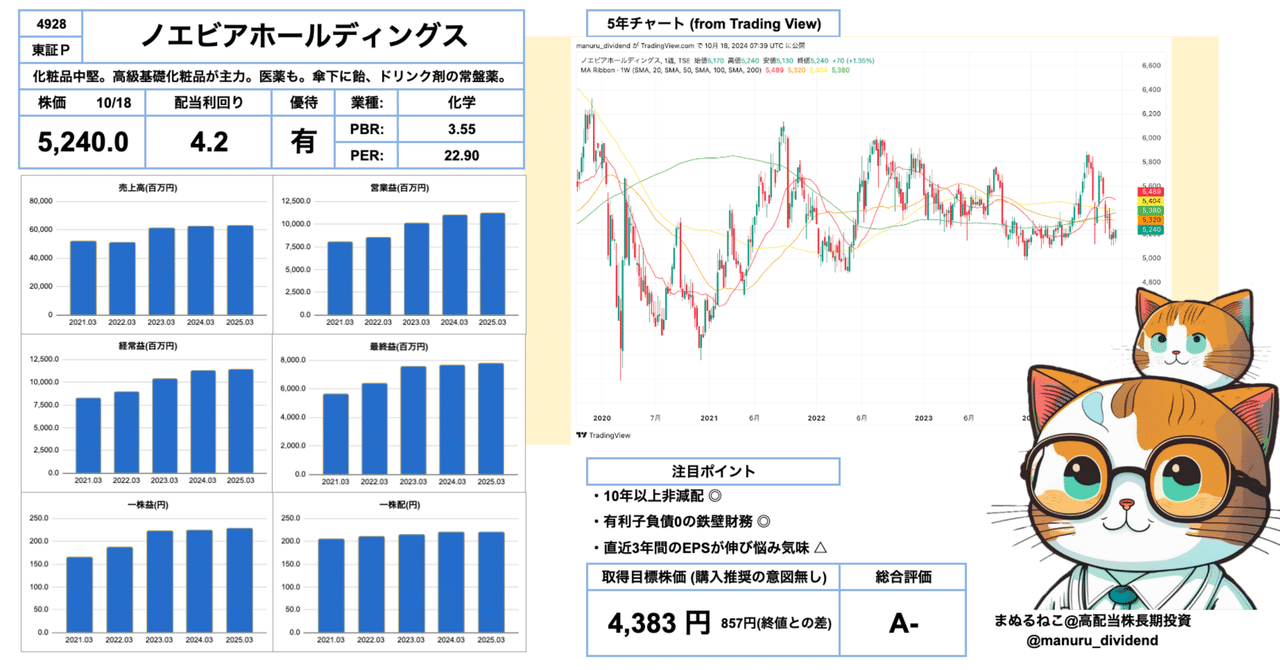 【鉄壁財務の高配当株】ノエビアHDは買い時か?中期経営計画と直近の決算から、買い時を分析!!まぬるねこ@高配当長期投資 3分で読めるので、ぜひ通勤中等にさらっと目を通してみてください!!!!!🐱🐱 #株式投資 #高配当株 note.com/manuru_haitou/…