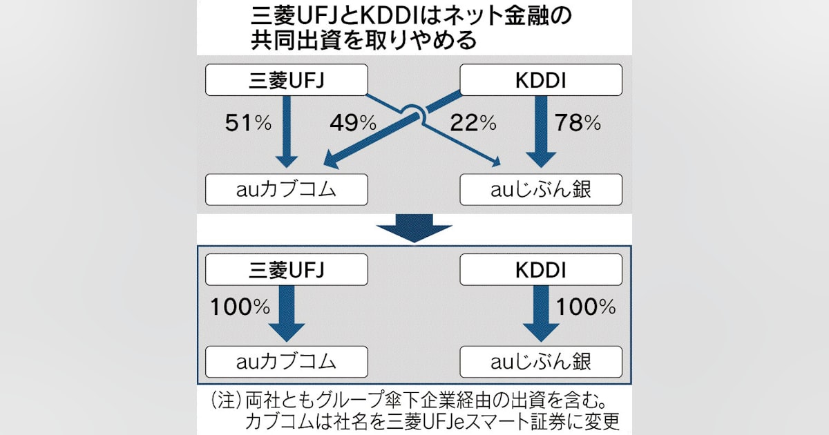 三菱UFJ、auカブコムを完全子会社化 来年1月末にも ネット証券「2強」追う - 日本経済新聞