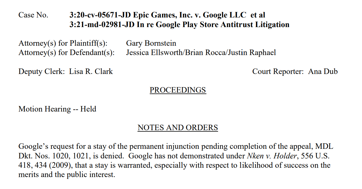 Google対Epic裁判、公式アプリストアの11月1日公開は回避